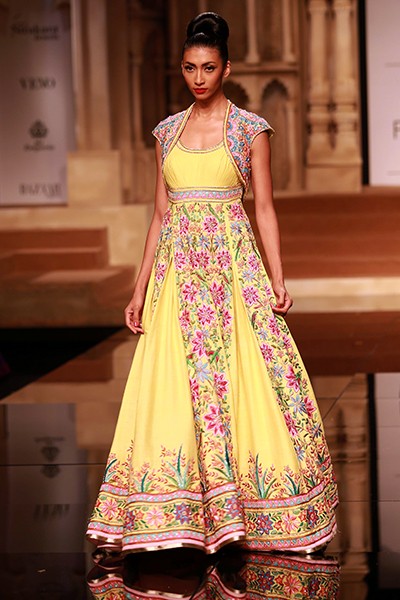 About the brand: Abu Jani and Sandeep Khosla: Classical Elegance is their signature style. The finest fabrics, impossibly fine hand-embroidery, delicate embellishments and flawless finishing are their hallmarks. Chikankari, Zardozi, Tharad, Mirrorwork are just some of the old that they have now made new.