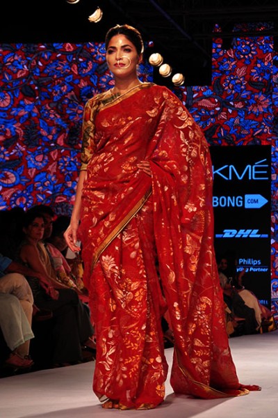About the brand: The label "GAURANG" personifies elegance and captivating the beauty of traditional handlooms and weaves, created using Jamdani weaving technique with pure zari on cottons and silks. Traditional motifs, inspired by the sculptures of South Indian temples, floral and geometrics drawn from the nature are the hallmark of his creations.