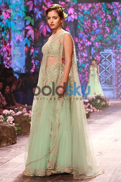 About the brand: Jyotsna’s collection ‘mystical romance’ adds a touch of mystery and romance to classic Indian look, highlighting the moods with flowy silhouettes, grecian drapes, and influence of varied colors and emotions which surround the bride. Also, this collection is an attempt to merge the classic evergreens of old India with modern outlook, underlying inspirations are classics and traditional and collection is aimed not only at Indian wedding but for all who want to experiment with India on every special occasion. An Indian inspiration with western influence gives new-ness to classic Indian bride.