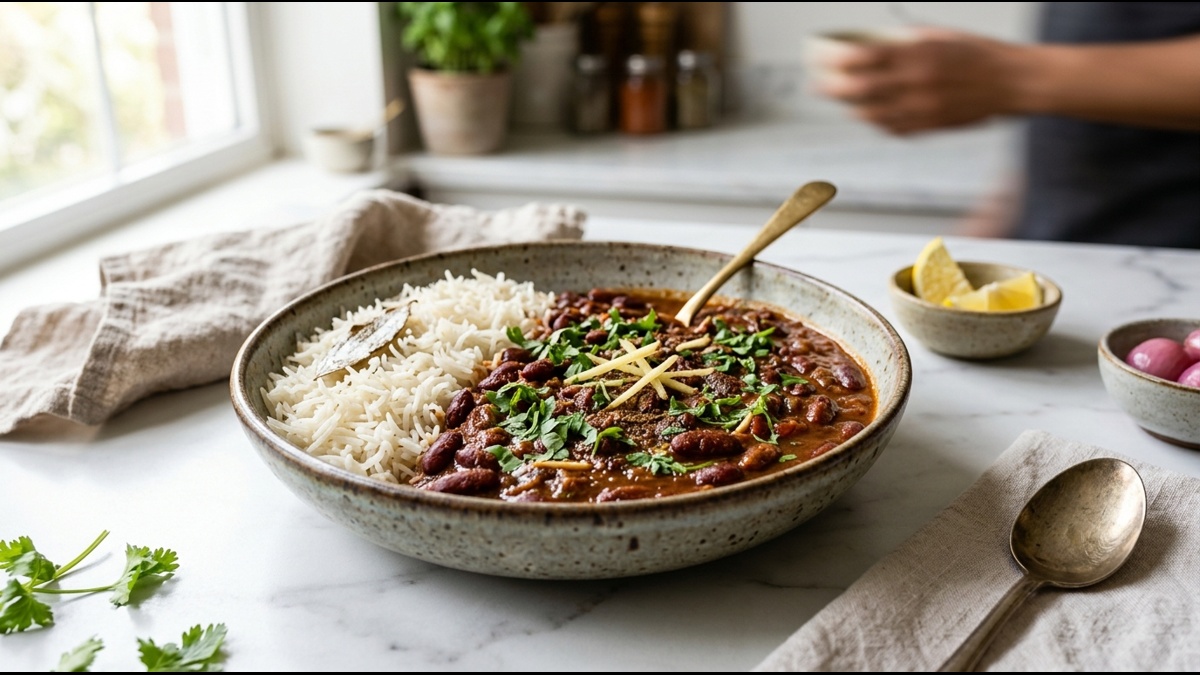 Pairing this rajma with perfectly fluffy basmati rice is the final step to perfection. Each grain of rice should be separate and infused with a hint of cumin. The contrast between the soft beans and the light rice is wonderful. It is a complete protein source that keeps you full for hours.